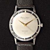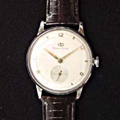 国産初の自動巻腕時計で、時計の可動時間が表指示されるユニークなデザインになっている。