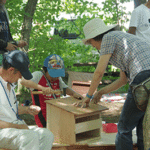 当日は、木工と陶芸、手芸の3部門が設けられ、メールボックスやペン立て、湯飲み、猫の顔が付いた小物入れなど、作りたいものを自由に選択して、工作に取りかかり、親が木を支えて、子供が金づちで釘を打つなど、親子が協力しながら作業に打ち込む姿が見られた。