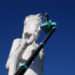中央町の高台にある観音山公園から韮崎市を見守っている韮崎平和観世音菩薩立像(通称:平和観音)は、1961年に建立され、今年60周年を迎えた。これを記念し、韮崎市と一般社団法人韮崎市観光協会は11月10日に高所作業車を使って平和観音の清掃活動を行った。