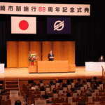 1954年10月に韮崎町や穂坂村、藤井村など1町10村が合併して誕生した韮崎市の「韮崎市制施行68周年記念式典」が、10月9日、東京エレクトロン韮崎文化ホールで開催され、関係者約200人が出席した。