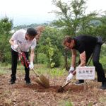 韮崎市はチェコ共和国メヘニツェ市との「友好都市交流事業」の一環として、8月9日に交流20周年を記念した植樹式を穂坂自然公園で開き、内藤久夫市長とメヘニツェ市のアレシュ・マトウシェク市長がチェコの国樹の菩提樹の苗木を植樹した。