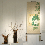 今回の展示は日本画家で截金という技法を用いた作品を紹介する小沢亜希子さんとオーダーメイドの花店を運営する久保るいさんによる初めての2人展。