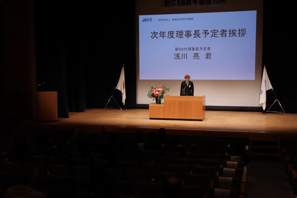 続いて来年1月から理事長を務める浅川亮副理事長が紹介され、浅川副理事長は「継承という意味の『Inheritance(インヘリタンス)』をスローガンに掲げ、時代の変化に柔軟に対応し、地域を明るく豊かにできる運動を勇気と情熱を持って果敢に挑戦していく」と来年の抱負を語った。