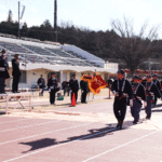 当日は市消防団のラッパ隊の演奏に合わせて、各分団の団員が威風堂々とした行進で入場。訓示に立った保坂団長は、「韮崎市消防団としての誇りをさらに高め、目標に向かって一丸となり地域の期待に応えるよう団員の技術向上が必要である」と述べた。