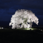 神山町の田園地帯にたたずむ市指定の天然記念物「わに塚のサクラ」のライトアップが、3月26日~30日に開かれ、夜空に浮かぶ幻想的な桜が見物客の目を楽しませた。